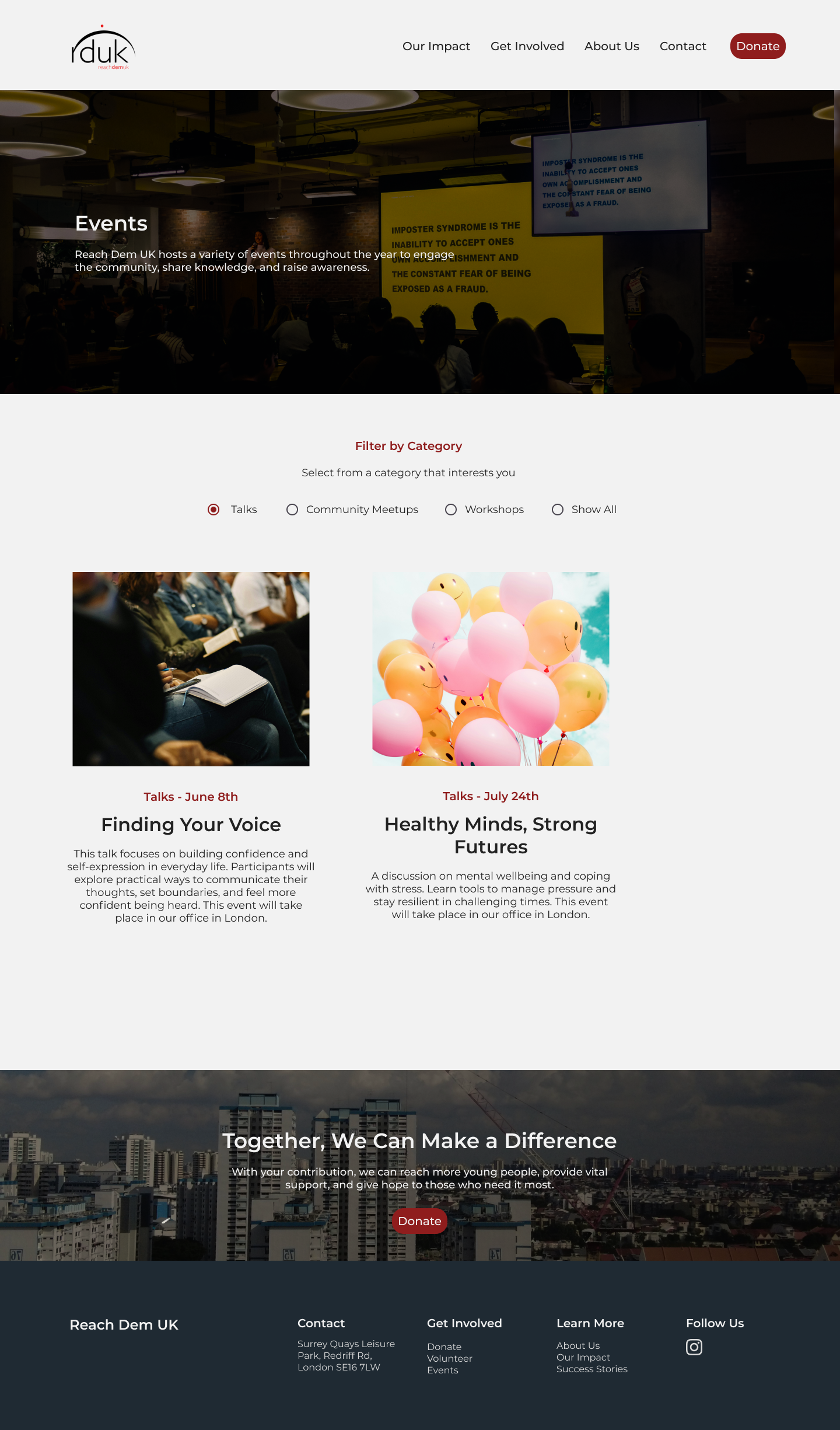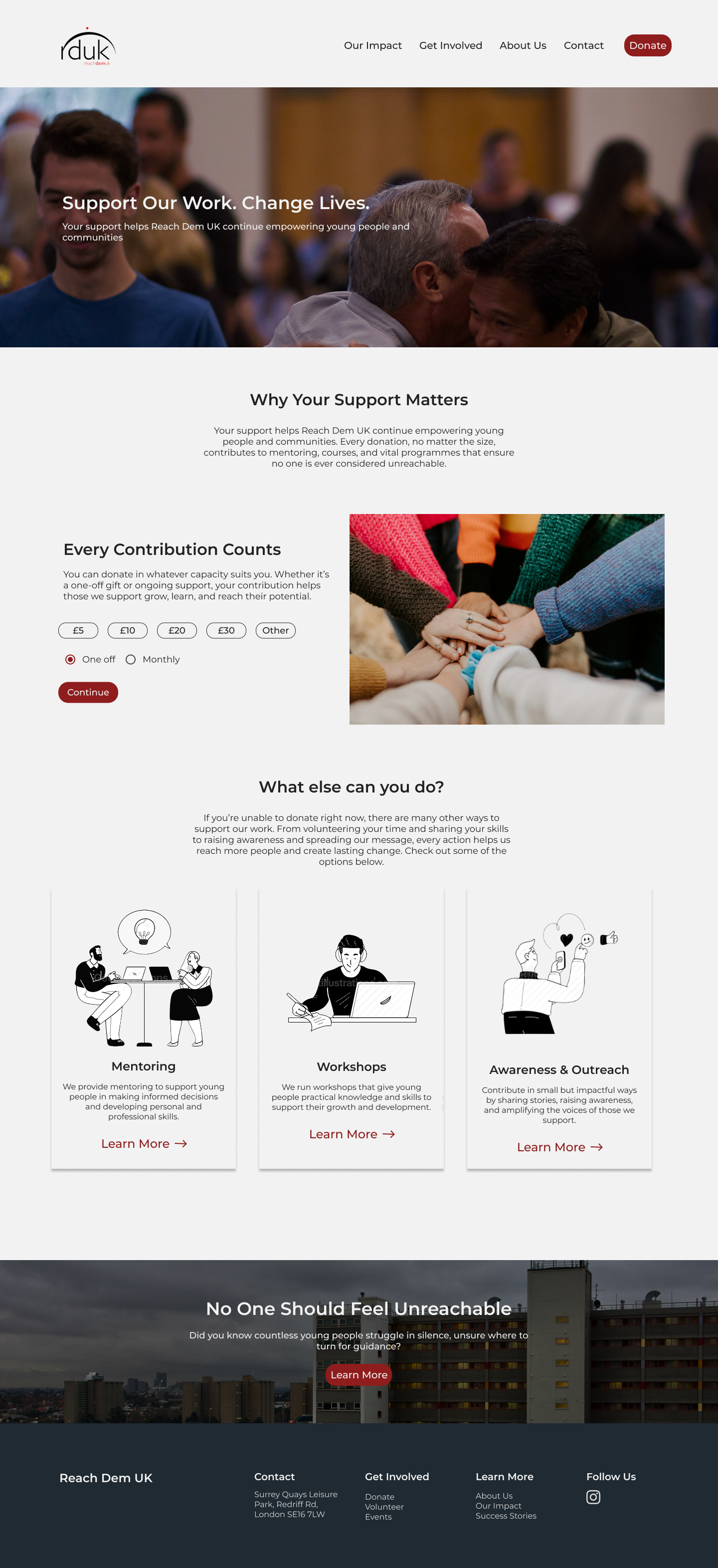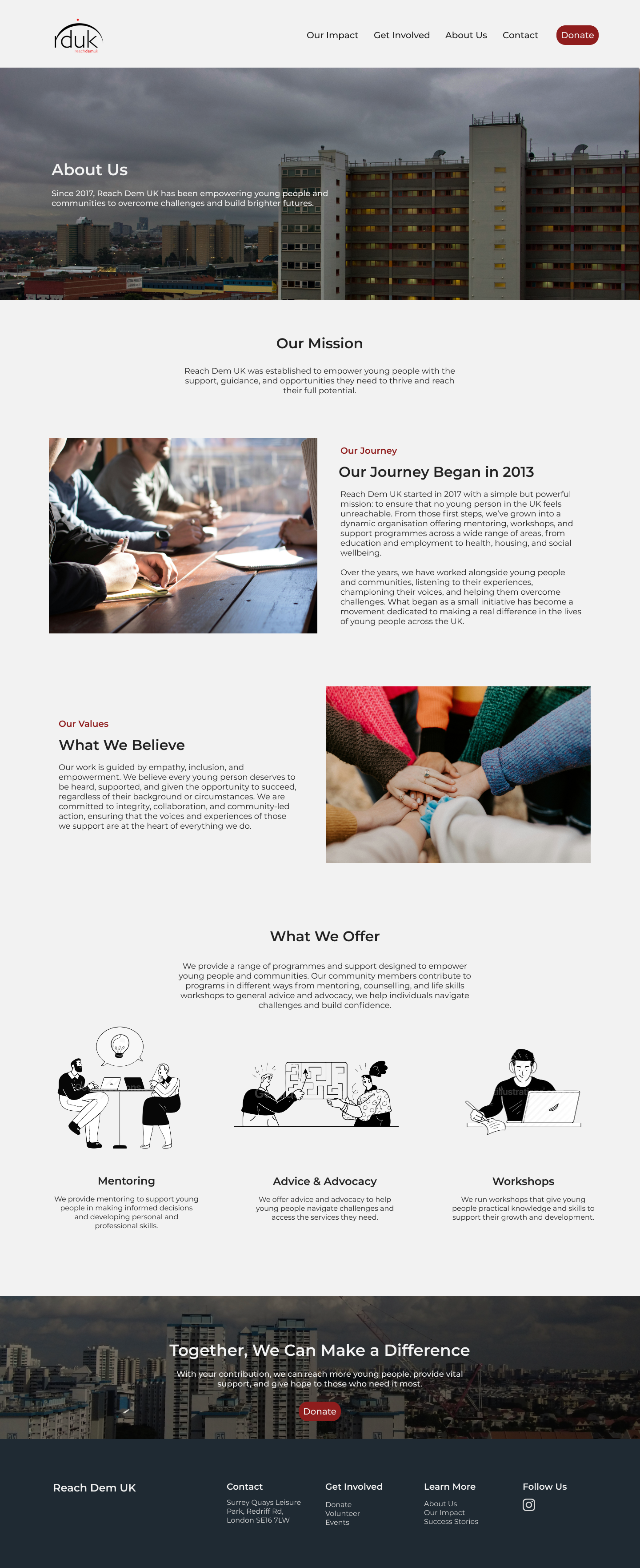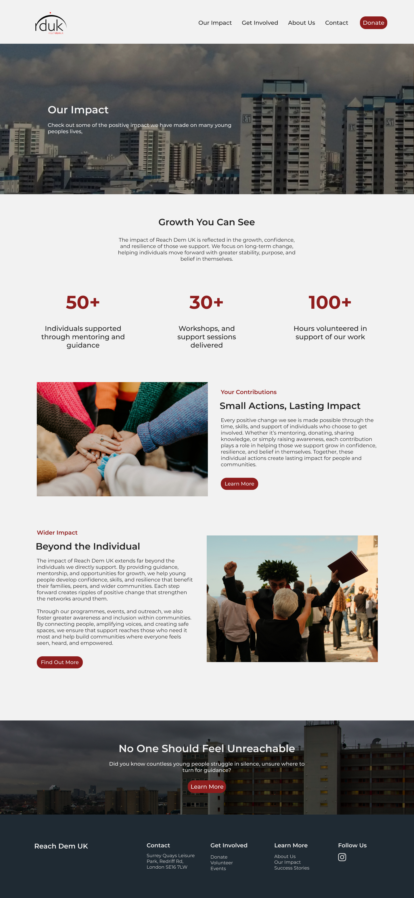 Introduced an “Our Impact” section, which gives further insight into Reach Dem UK’s positive impact on young people's lives and demonstrates how all volunteers’ contributions are positively impacting young people’s lives.